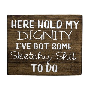 Details About Here Hold My Dignity Hand Painted Small Wood Sign Novelty Funny Home Decor