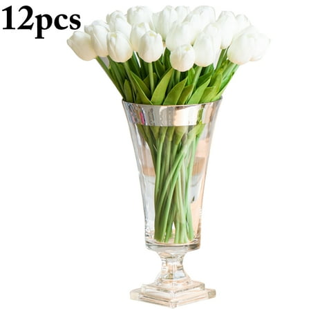 Aliersa Artificial Tulips 10 Heads Mini Real Touch Artificial Flowers Fake Tulip For Home Decor Wedding Party Diy Bouquet Flowers White