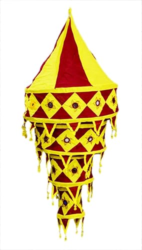 Indian Traditonal Hanging Lampshade Embroidered Mirror Work Home Decor 4 Step Shade