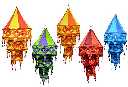 Buy Indian Traditional Hanging Lamps Shades Mirror Work