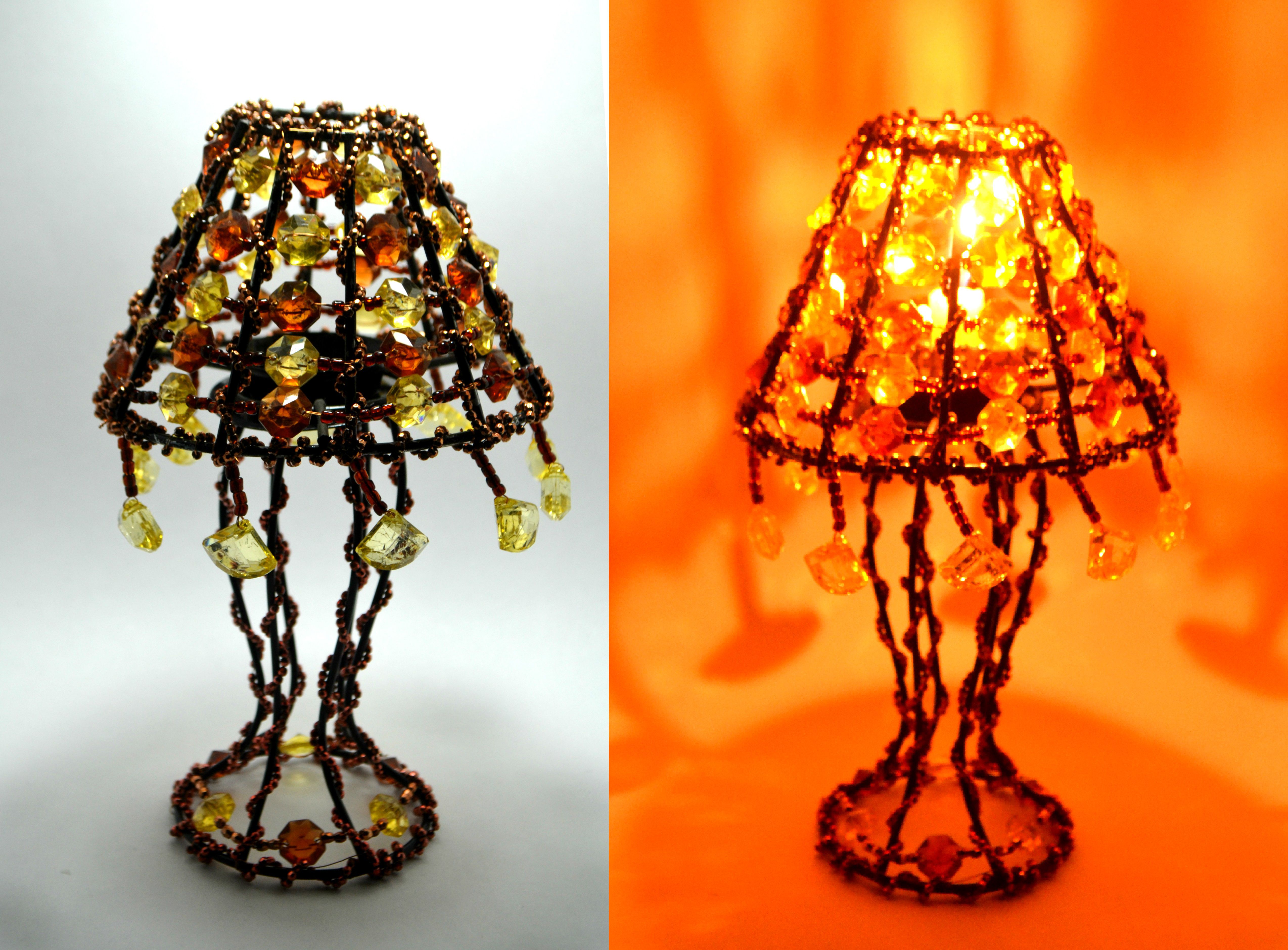 Brown Yellow Beaded Tealight Lamp Shade Beaded Candle Holder Brown Decor Beaded Home Decor Tealight Candle Holder Decorative Lamp Shade