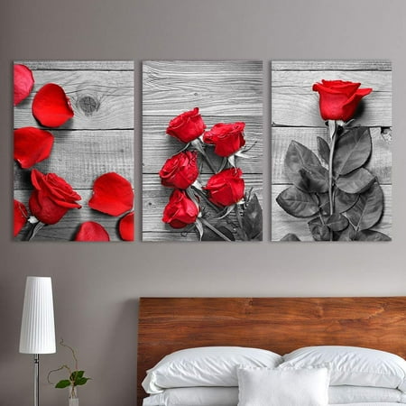 Wall26 3 Panel Canvas Wall Art Black And White Roses With Touch Of Red Color Giclee Print Gallery Wrap Modern Home Decor Ready To Hang 24 X36 X