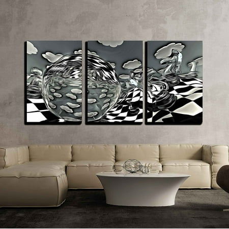 Wall26 3 Piece Canvas Wall Art Surreal Chess Board Landscape In Black And White Modern Home Decor Stretched And Framed Ready To Hang 16 X24 X3