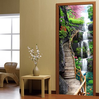 Hot 3d Door Sticker Waterfalls Nature Mural Pvc Waterproof Wallpaper Home Decor